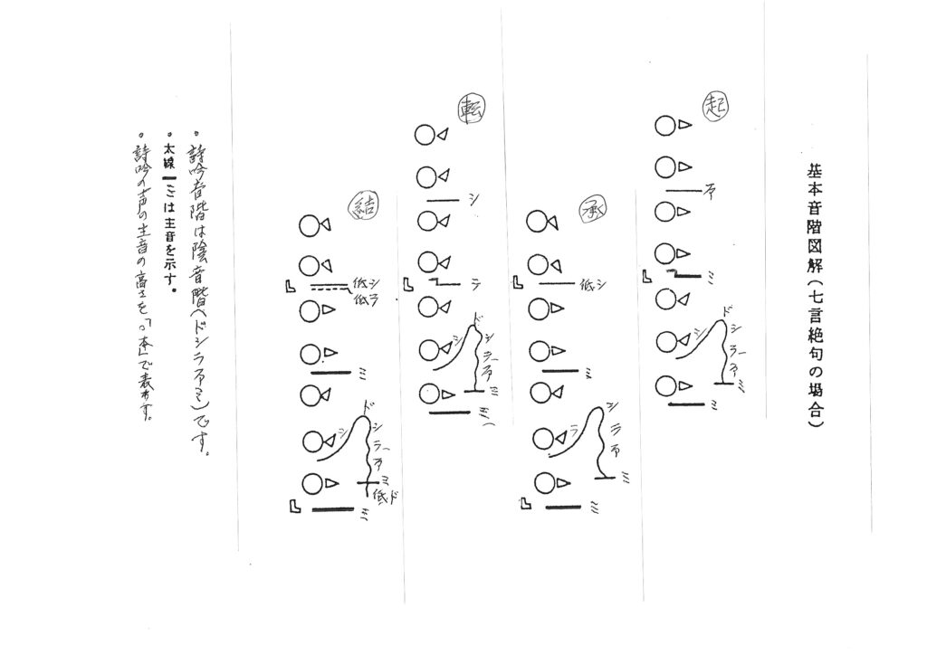 * 詩吟は、主音に始まり、主音に終わる。(キーの高さに個人差あり)